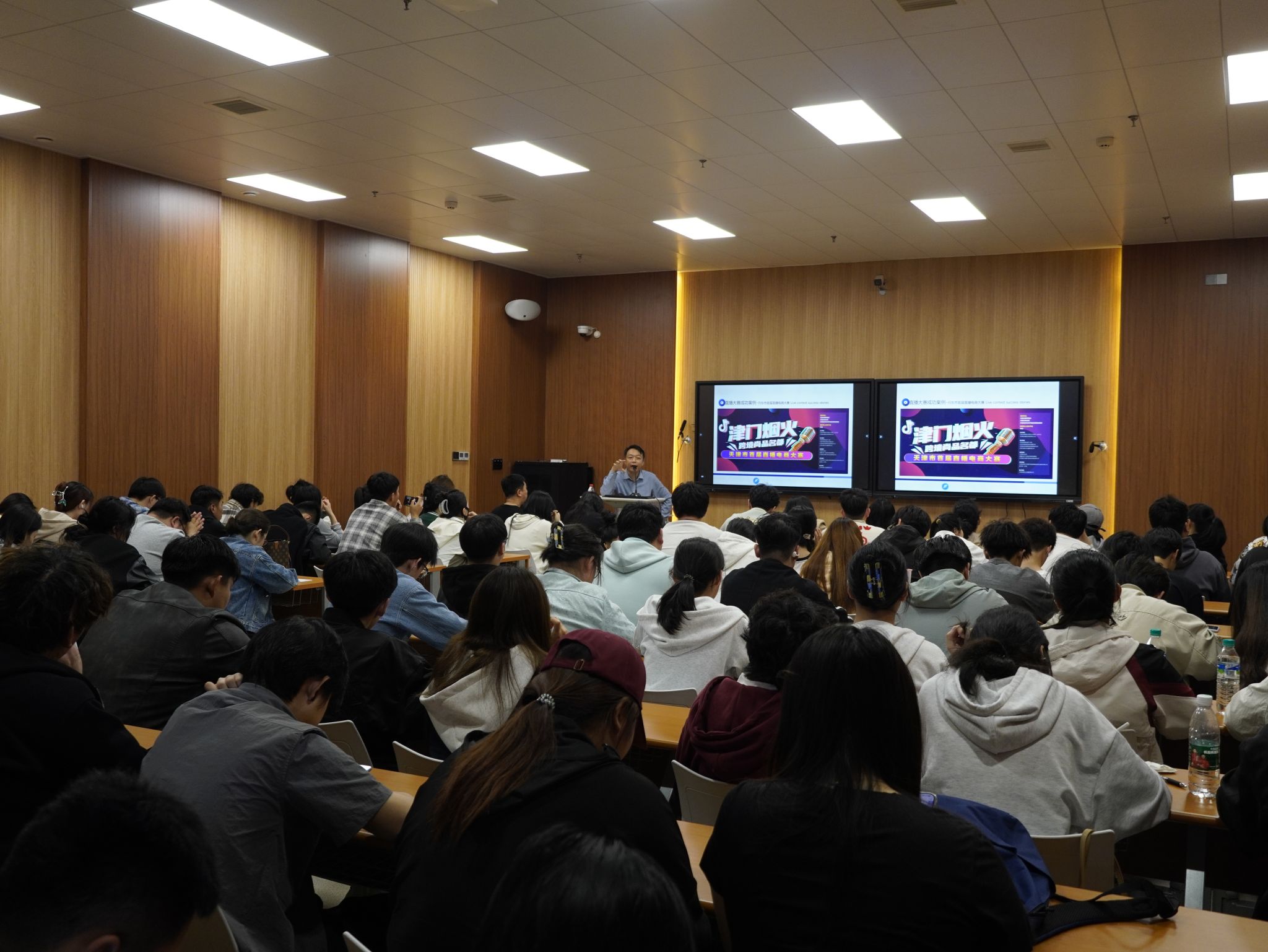 讲座中,陈浩导师凭借丰富的实践经验与专业知识,围绕直播短视频应用实践展开深入讲解。他结合实际案例,从直播策划、短视频创意制作,到带货技巧、流量运营等多个维度,为师生们详细剖析了行业发展趋势与实操要点。现场互动环节气氛热烈,同学们踊跃提问,陈浩导师耐心解答,让大家对直播短视频行业有了更深刻的认识和理解。