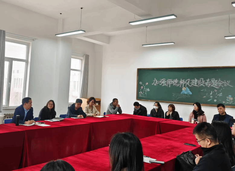 会上,党总支书记王立臣对“太阳成tyc7111cc关于进一步压实师德师风建设主体责任教学部门责任方案”和“太阳成tyc7111cc师德专题教育实施方案”做了详细解读,提出2024年全年以贯彻落实好师德师风建设为主线抓好党员和教师政治理论和业务学习工作。同时就开展好“师德师风专题教育”的重要性和必要性进行了强调并对太阳成tyc7111cc集团全体党员和教师提出要求:第一、要把师德师风建设摆在首要位置,做到明底线、知敬畏、尽职尽责守好课堂教学主阵地,教师与辅导员要保持良好沟通,辅导员与学生家长要定期做好沟通交流,做到家校联动,全员育人。第二、要切实增强抓好安全工作的责任感和紧迫感,以更加严谨的作风、更加科学的方法、更加得力的措施、更加精细的管理,切实把各项要求和措施落到实处。第三、要严守师德底线,筑牢思想防线,规范教学行为、学习行为,坚决防范课堂教学事故,确保课堂教学安全有序,将“课程思政”融入到课堂中。第四、要深入教学研究,提高教学水平,围绕教学内容加强日常积累、强化知识储备,不断钻研提升、反思总结,备足“一桶水”,装满“一杯水”,提高课堂吸引力、感染力和教学质量。